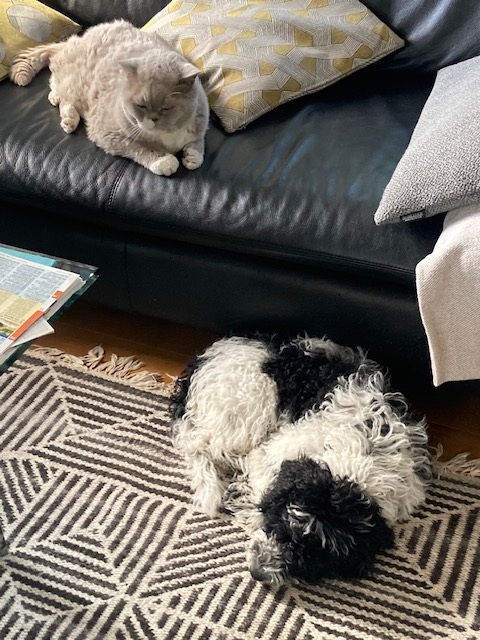Fiel (Hernando) und Kater Willi. Wir sind so stolz auf Fiel und seine liebevolle Familie. Fiel verträgt sich gut mit Kater Willi. So hätten wir es nicht für möglich gehalten.