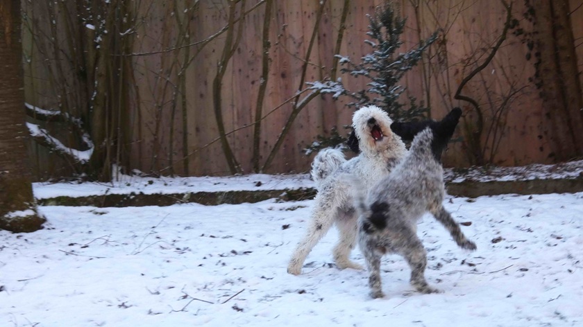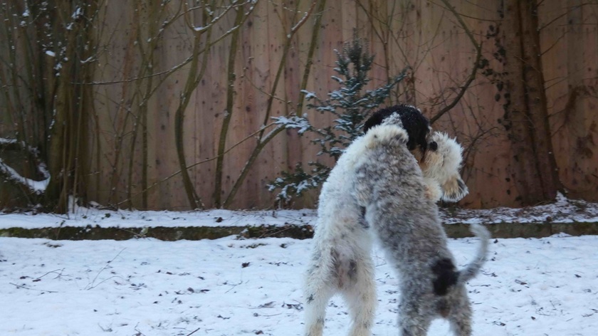 Sansa (Haya) und ihr Rudel haben auch Schnee in Korntal.