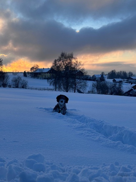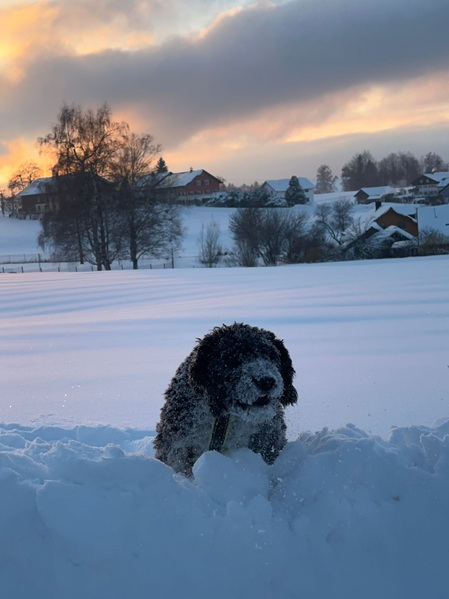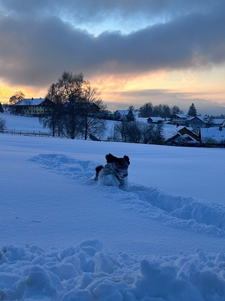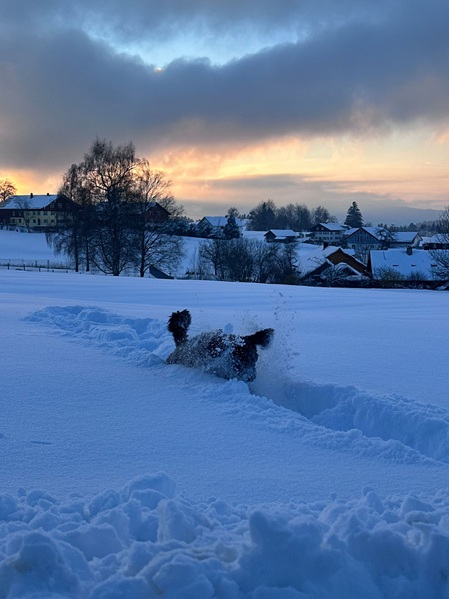 Sansa (Haya) hat ordentlich Schnee im Allgäu.